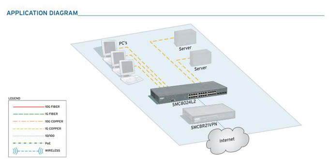 SMC Tiger Switch 10/100/1000 24埠千兆交換機,是新款設計符合1RU機櫃的大小,專為中小企業設計的機型。 |