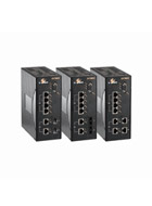 Hardened Managed 10-port 10/100BASE (8 x PoE) and 2-port Gigabit Ethernet Switch Download Datasheet Manual Installation Guide Visio Stencil Overview Features Specifications Ordering Info SPOTLIGHT • Versatile PoE Connectivity - 10-port 10/100BASE-TX/FX/BX/SFP plus 2-port Gigabit-TX/SX/LX/SFP - Port 1 to 8 supports IEEE802.3af or IEEE802.3at Power over Ethernet • Hardened Grade - Wide operating temperature range From -40°C to 75°C (-40°F to 167°F) for extreme environments - Fanless and ruggedized housing - High shock and electric noise immunity - Complies with NEMA TS2 for traffice control eqipment • Secure Remote Access - IEEE802.1x and RADIUS support OVERVIEW EtherWAN's EX78000 Series provides a hardened 10-port switching platform supporting IEEE802.3at Power over Ethernet, high performance switching with robust management features required for mission-critical and harsh environments where sustained connectivity is crucial. The EX78000 Series is equipped with 8 10/100BASE-TX PoE ports, in combination with two Gigabit SX/LX/BX/WDM Fiber ports with SFP options. The IEEE802.3at PoE ports provide up to 30W/port with a total power budget of 180W, making the switch truly versatile for connecting with PoE Powered Devices (PD) with different bandwidth and power consumption requirements such as outdoor PTZ dome cameras, wireless access points, and way-side communication devices. Din rail mountable, the EX78000 Series is equipped with EtherWAN's Alpha-Ring self-healing ring technology providing less than 15ms fault recovery time. Users are able to access management features such as port security, IGMP snooping, port-based VLAN, GARP protocols, link aggregation an, via web browser, telnet, SSH, SNMP, RMON, TFTP, and RS-232 console interfaces. With the hardened specifications, the EX78000 Series is designed to operate at -40°C to 75°C in harsh environments, where high ESD, shock, and vibration may be present. EtherWAN — "When Connectivity is Crucial." Management • Interface - CLI, Telnet and Web Browser - SNMP v1/v2c/v3 • Firmware and configuration upgrade and backup via TFTP • Supports DHCP Server/Client • RMON (Remote monitoring): group 1, 2, 3, 9 • Port mirroring: TX/RX and both • SFP tranceivers support Digital Diagnostics Monitoring (DDM) • NTP (Network Time Protocol) time synchronization • IEEE802.1ab LLDP (Link Layer Discovery Protocol) Security • MAC address filtering • Enable/disable port • Storm control (broadcast and multicast types) • IEEE802.1x LAN access control • Remote authentication through RADIUS • SSH for CLI and Telnet security • SSL for web security • Multi-level user account/password against unauthorized configuration • System log (remote/local) Quality of Service (QoS) • Priority Queues: 4 queues per port • Traffic classification based on IEEE802.1p CoS, DSCP, WRR (Weighted round robin) and strict mode • Rate Limiting (Ingress/Egress) Layer 2 Features • Auto-negotiation for port speed and duplex mode • Flow Control - IEEE802.3x full duplex mode - Back-Pressure half duplex mode • Redundant Protocol - IEEE802.1D Spanning Tree Protocol (STP) - IEEE802.1w Rapid Spanning Tree Protocol (RSTP) - IEEE802.1s Multiple Spanning Tree Protocol (MSTP) - EtherWAN’s Alpha-Ring network fault recovery (<15ms) • VLANs - Port-based VLANs - IEEE802.1Q Tag VLANs (128 groups, 4096 VID) - GVRP (GARP VLAN Registration Protocol) - GMRP (GARP Multicast Registration Protocol) • Link Aggregation - Static Trunk (2 groups, support MAC base) - IEEE802.3ad Link Aggregation Control Protocol • IGMP Snooping - IGMP snooping v1/v2/v3 Performance • Switching Capability: 6Gbps • Packet Buffer Size: 2M • MAC Address Table: 8K Technology Standards • IEEE802.3 10BASE-T • IEEE802.3u 100BASE-TX/100BASE-FX • IEEE802.3ab 1000BASE-T • IEEE802.3z 1000BASE-SX/1000BASE-LX • IEEE802.3x Full duplex and flow control • IEEE802.1p QoS • IEEE802.1Q Tag VLANs • IEEE802.1w RSTP • IEEE802.1x Port-based Network Access Control • IEEE802.3af/at Power over Ethernet (PoE) Forward and Filtering Rate • 14,880pps for 10Mbps • 148,810pps for 100Mbps • 1,488,100pps for 1000Mbps Packet Buffer Memory 2M bits Processing Type • Store-and-Forward • Auto Negotiation • Half-duplex back-pressure and IEEE802.3x full-duplex flow control • Auto MDI/MDIX Address Table Size 8192 MAC addresses Power Power Input • Redundant power input: Terminal Block: 47 - 57VDC DC Jack: 47 - 57VDC Power Consumption • Device: Max. 15W (without PoE) • PoE power budget (depends on power input): 181.6W Max. PoE Power Output • Port 1 to 8 support PoE • IEEE802.3af: up to 15.4W/port, 47 - 57VDC. • IEEE802.3at: up to 30W/port, 50 - 57VDC Protection • Overload current protection • Reverse polarity protection Mechanical Casing • Metal Case • IP30 Dimensions • 71.4mm (W) x 140mm (D) x 170mm (H) (2.85" (W) x 5.6" (D) x 6.8" (H)) Weight • 1.7Kg (3.74lbs.) Installation • Din-Rail (Top hat type 35mm) or Wall mounting Interface Ethernet Port • 10/100BASE-TX (PoE): 8 or 4 ports • 100BASE-FX: 0, 2 or 4 ports • Gigabit: 0, 1 or 2 ports Console Port • Port: One DB9 RS-232 port LED Indicators • Per Unit: Power 1, Power 2, Power 3 • Per Port: Link/Activity (Green) • Per PoE Port: PoE (Orange) Environment Operating Temperature • -40°C to 75°C (-40°F to 167°F) Tested @ -40°C to 85°C (-40°F to 185°F) Storage Temperature • -45°C to 85°C (-49°F to 185°F) Ambient Relative Humidity • 5% to 95% (non-condensing) Regulatory Approvals ISO • Manufactured in an ISO9001 facility Safety UL508 EMI FCC Part 15B, Class A EN61000-6-4 EN55022 EN61000-3-2 EN61000-3-3 EMS EN61000-6-2 • EN61000-4-2 (ESD Standards) • EN61000-4-3 (Radiated RFI Standards) • EN61000-4-4 (Burst Standards) • EN61000-4-5 (Surge Standards) • EN61000-4-6 (Induced RFI Standards) • EN61000-4-8 (Magnetic Field Standards) Environmental Test Compliance IEC60068-2-6 Fc (